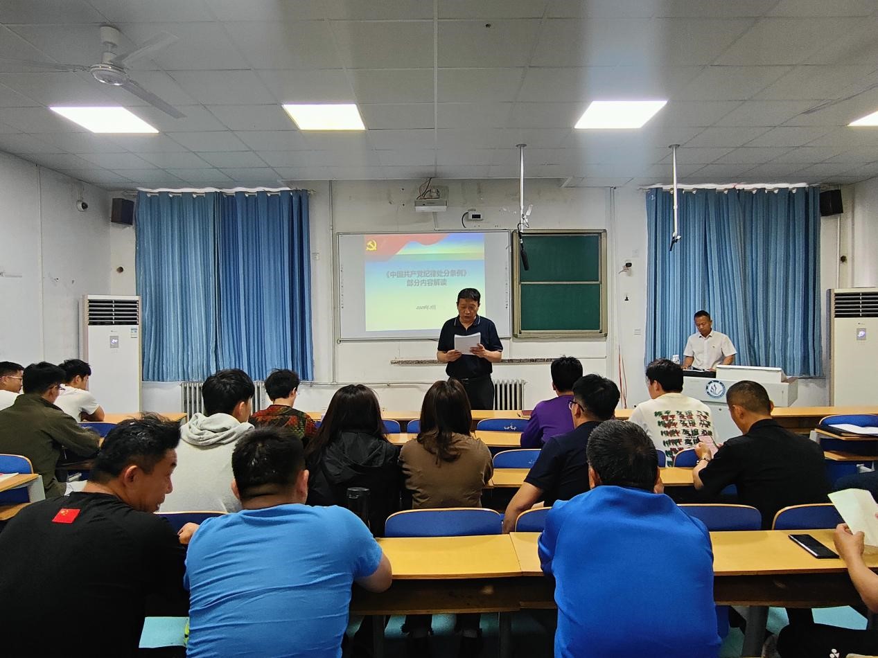 明纪于心,守纪于行。为落实党中央关于开展党纪学习教育的部署要求和省委工作安排,扎实推进公司党纪学习教育走深走实,2024年5月16日ladbrokes立博邀请《中国共产党纪律处分条例》宣讲团成员、纪检办公室主任杨重军为全体师生党员进行《条例》宣讲解读。