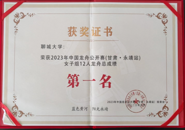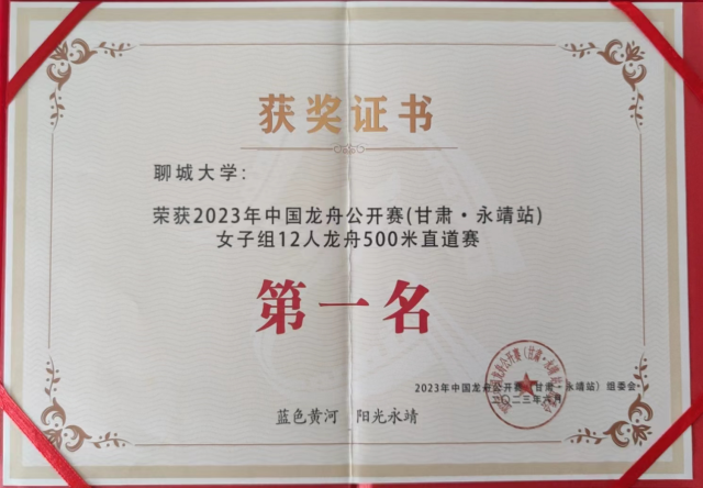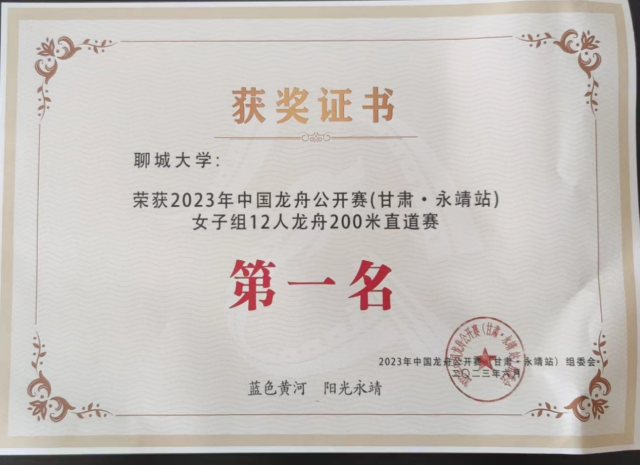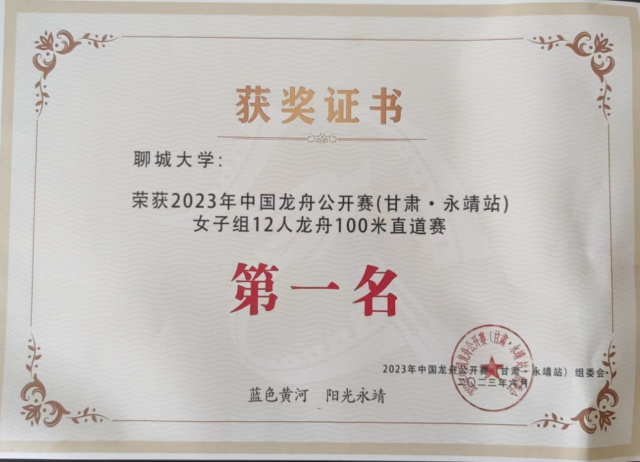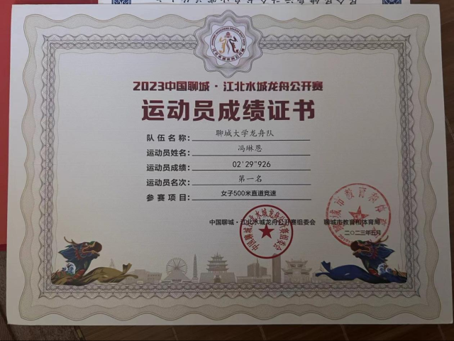 2023年,在山东省第十二届全民健身运动会龙舟比赛授予“志愿者”证书;