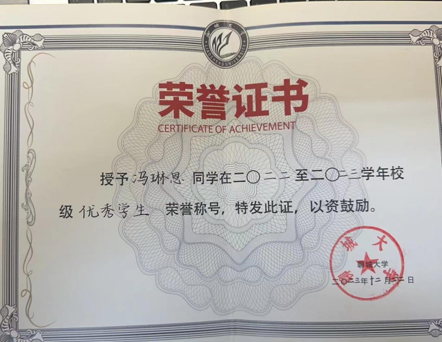 2021年,获得“军事技能训练先进个人”荣誉称号;