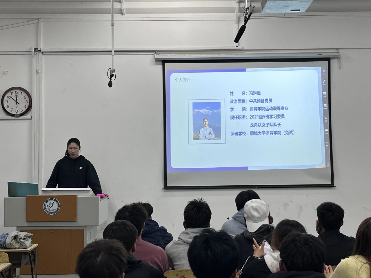 在分享会上,冯琳恩学姐围绕推免研究生的竞选条件给出了意见与建议并从四个方面展开精彩分享:一是详细向同学们详细解读了推免的相关政策并讲述推免对于学习绩点的要求,强调要在日常生活中注意积累,认真学习学术知识,二是分享了自己大学四年的学习历程与时间管理经验,多去参与学术竞赛系列活动,三是要积极参加志愿服务活动,在优异的学术成绩的基础之上也要拓展个人的素质能力,才能在推免中脱颖而出;四是生动讲述了保研过程中的关键节点与心路历程;并且重点强调了推免过程中的注意事项。在互动环节,同学们踊跃提问,学姐一一耐心解答,现场氛围热烈。