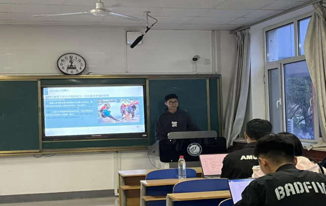 2023级体育教学专业研究生王玉博分享了参加《民族民间传统体育研究学术论坛》的心得体会,从会议主题:传承发展民族民间传统体育,构筑中华民族共有精神家园入手分享了民族民间传统体育铸牢中华民族共同体意识研究、民族民间传统体育促进各民族交往交流交融研究、民族民间传统体育历史与文化研究、民族民间传统体育文化的创造性转化与创新性研究等方面的研究成果。之后又介绍了已录取的专题报告《新时代背景下民间体育游戏在小学体育中的开展的价值与策略》,阐述了民间体育游戏在小学体育中开展的价值,从网络游戏、竞技体育、公司认同感三个方面梳理出新时代背景下民间体育游戏在小学开展中的现实困境,从而为在新时代背景下民间体育游戏在小学体育中开展提供参考策略。