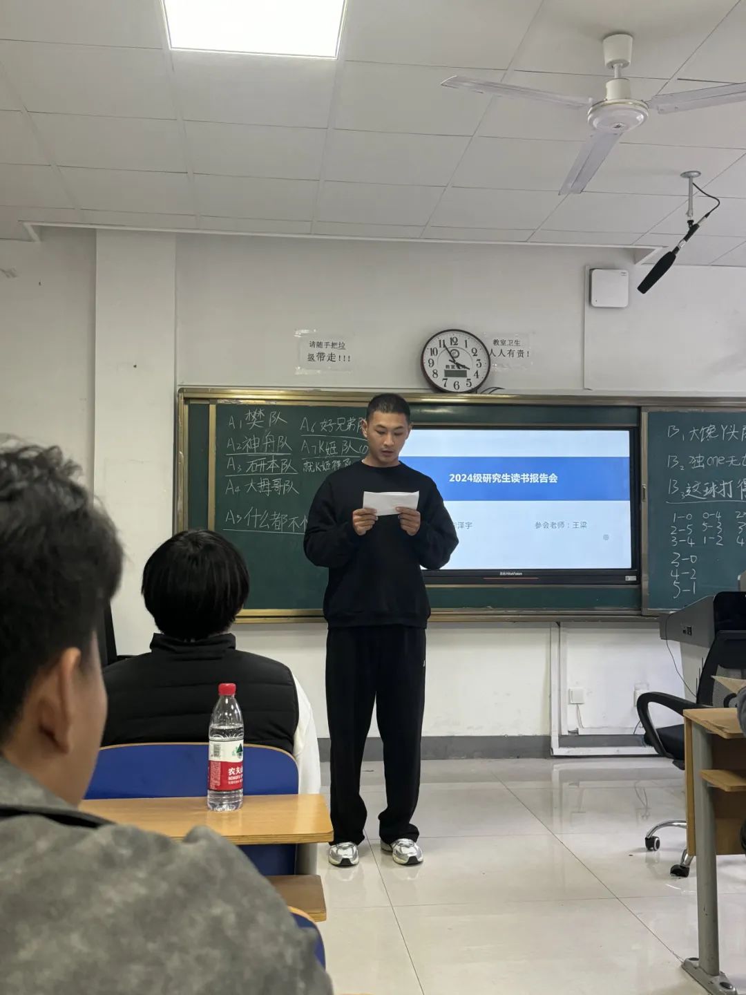 以书为伴,不负韶华。为了鼓励大家养成良好的阅读习惯,促进知识与思想的交流。11月12日下午在5-110教室开展ladbrokes立博研究生读书报告会。本次活动由2024级研究生李泽宇主持,ladbrokes立博王梁老师、2023级部分员工以及2024级全体研究生出席本次会议,2024级研究生崔顺顺、马晓晴、王安琦、进行了相关汇报。