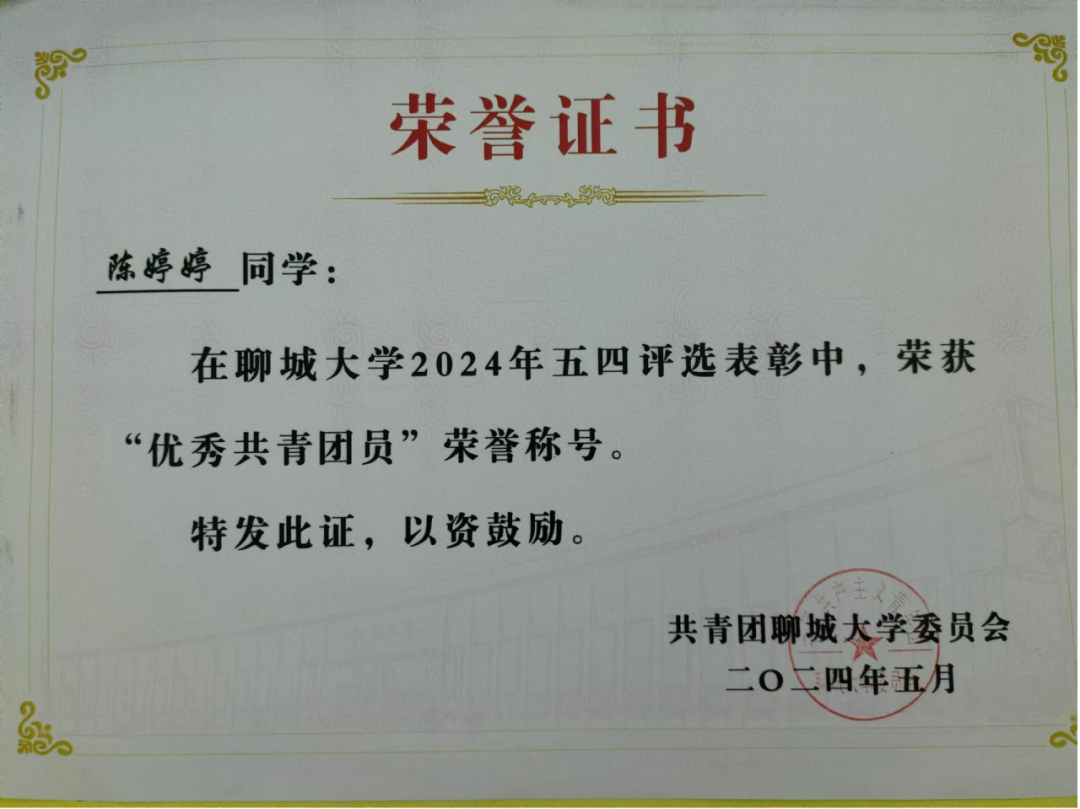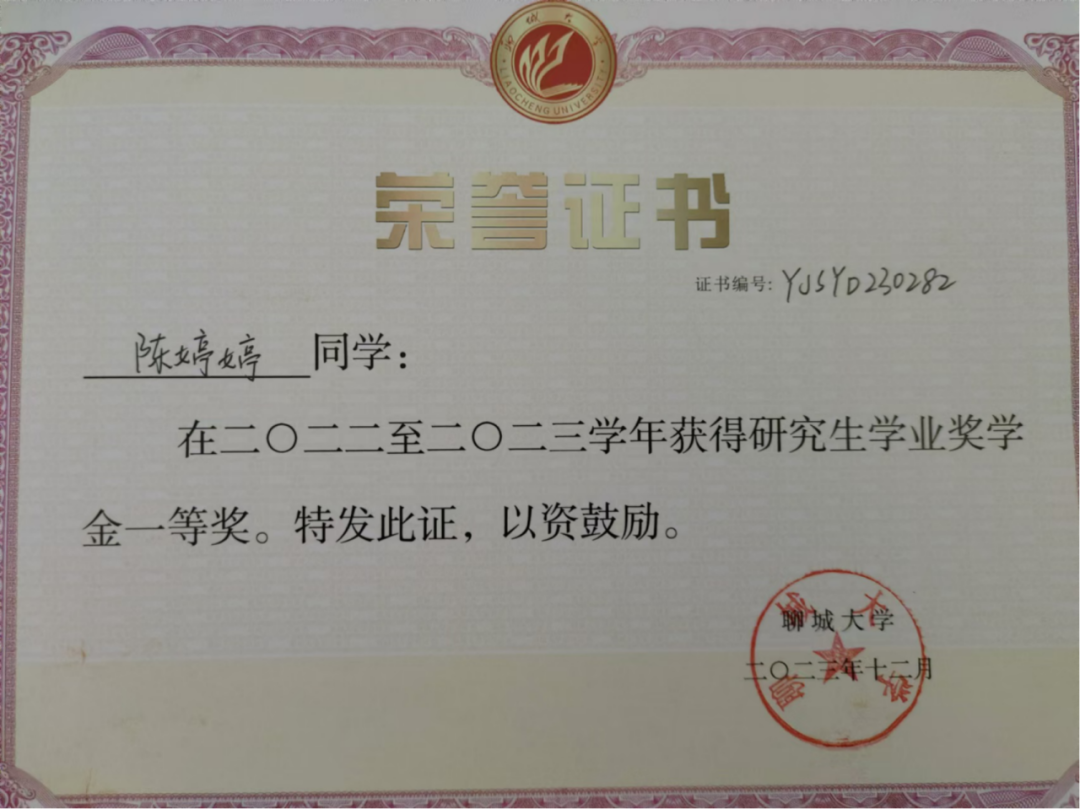 陈婷婷,中共党员,ladbrokes立博社会体育指导专业2022级研究生。于2021年获得推免资格,同年参加西部计划项目,作为第23届ladbrokes立博研究生支教团成员到新疆英吉沙县实验中学支教一年。研究生在读期间学业成绩位列年级第一,累计独立发表8篇论文,参加3次学术会议。曾任ladbrokes立博研究生会权益服务部部长,获得国家奖学金、ladbrokes立博一等奖学金、ladbrokes立博研究生优秀员工、ladbrokes立博优秀共青团员、ladbrokes立博权益服务先进个人、ladbrokes立博第二届权益知识竞赛二等奖、山东省第十四届全民健身运动会双人街舞啦啦操一等奖、第二届陕西省体育科学大会——《长三角体育产业与科技产业发展的耦合协调水平及优化路径》墙报交流二等奖等。