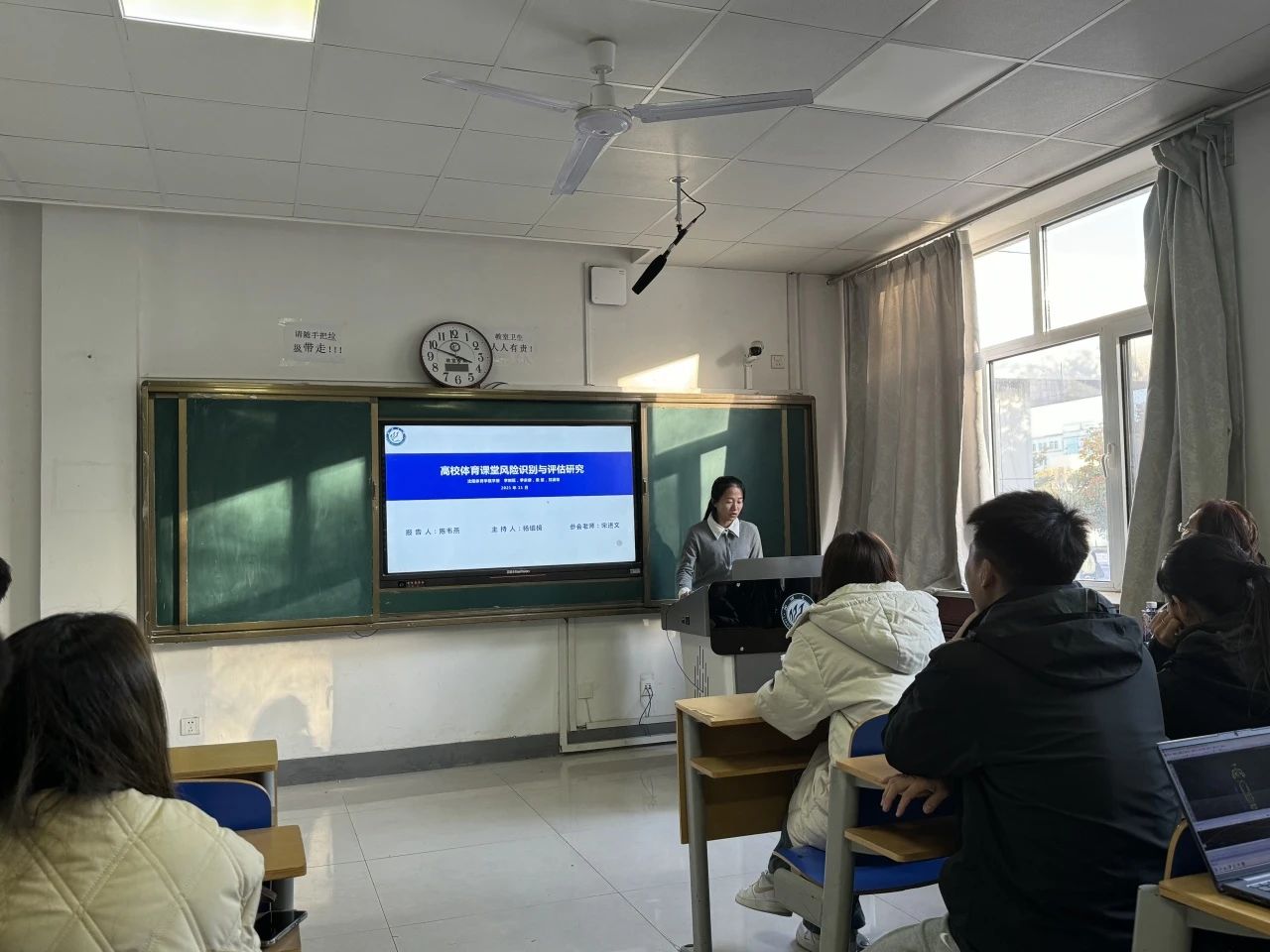 2024级体育教学专业研究生陈韦燕汇报题目为《高校体育课堂风险识别与评估研究》本文基于修正 IPA 方法以横纵坐标轴模型构建高校体育运动风险评估的“严重性 - 可能性矩阵”,通过分析高校体育运动风险发生的可能性和严重性,直观展现了教师和员工对当前体育课风险各要素评估的真实境况,为体育课的课堂安全提出建议。