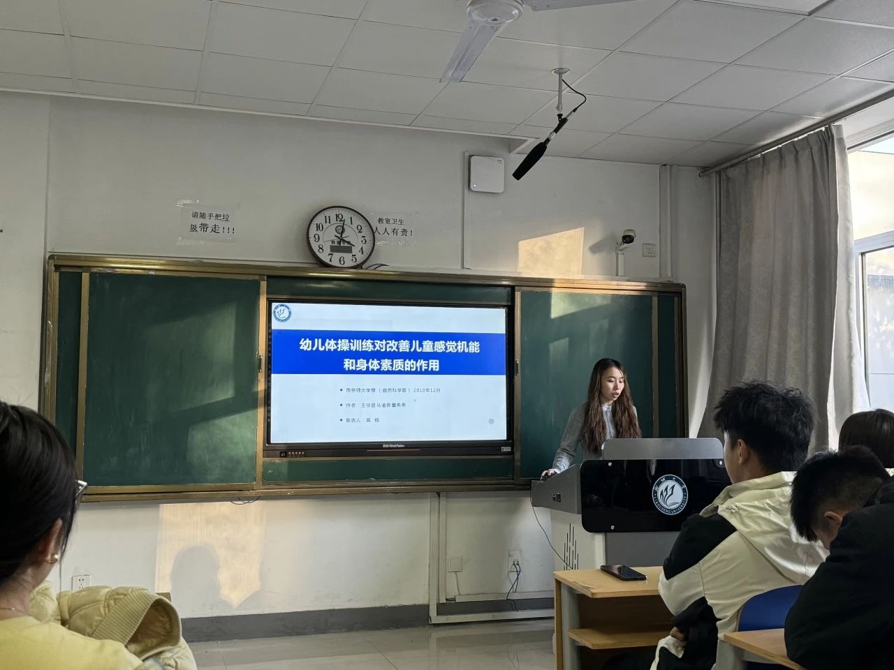 2024级体育教学专业研究生左一诺报题目为《身体素养理论视域下 5-6 岁幼儿民族传统体育游戏课程设计与实证研究》本文通过民族传统体育课程对5-6 岁幼儿三项体能健康指标四项心理认知能力指标两项动作技能指标的研究,为幼儿园运动游戏课程的设计与实施提供实践参考。
