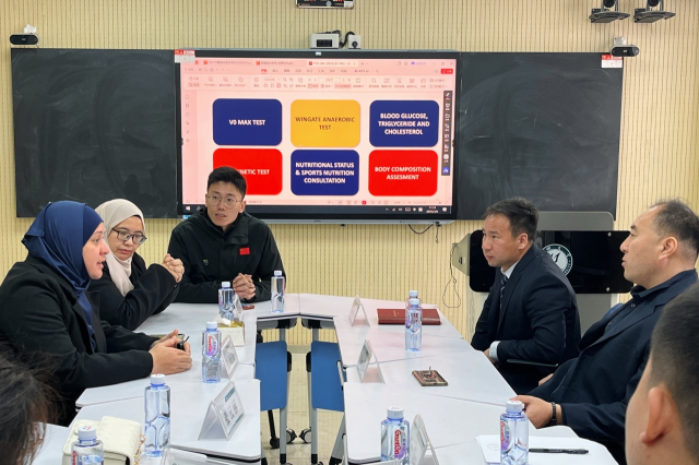 Eliza Binti Hafiz 教授主攻运动生物力学领域。她通过展示马来亚的古建筑及校园建筑,介绍了当地的教学环境,让在场师生对马来亚大学的教育风貌有了直观感受。接着,她详细阐述了马来亚大学的人才培养模式与毕业要求,为公司的教学改革提供了宝贵的参考。最后,Eliza Binti Hafiz 教授分享了自己当下的研究课题 —— 漱口水对运动的影响,新颖的研究视角引发了大家浓厚的兴趣。