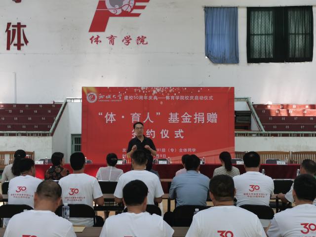 公司党委副书记高国元代表学院致辞,热烈欢迎员工返校聚首,并对捐赠活动表示感谢。他表示“体・育人”基金是员工回馈母校的真情体现,为体院学子的薪火相传树立了标杆。