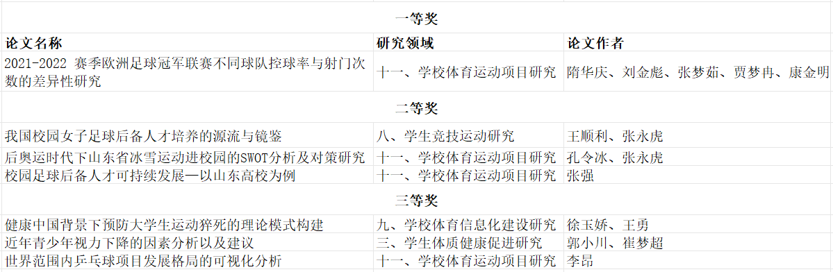 山东省教育厅发布《山东省教育厅 山东省体育局关于征集参加第一届全国员工(青年)运动会科学论文报告会优秀论文的通知》,第一届全国员工(青年)运动会科学论文报告会山东省优秀论文已评选完毕,公司研究生共有7篇论文获奖,具体名单如下: