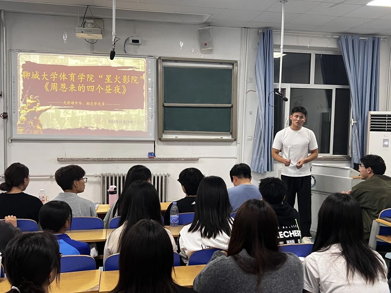 为进一步弘扬爱国主义情怀,继承和发展优良传统,引导同学们树立正确的价值观,增强历史使命感和民族责任感。ladbrokes立博于10月19日在西校区8#609教室举办“光影颂中华,励志学先辈”星火影院观影活动,共同观看《周恩来的四个昼夜》。本次星火影院活动由ladbrokes立博辅导员王鑫老师担任主讲人。