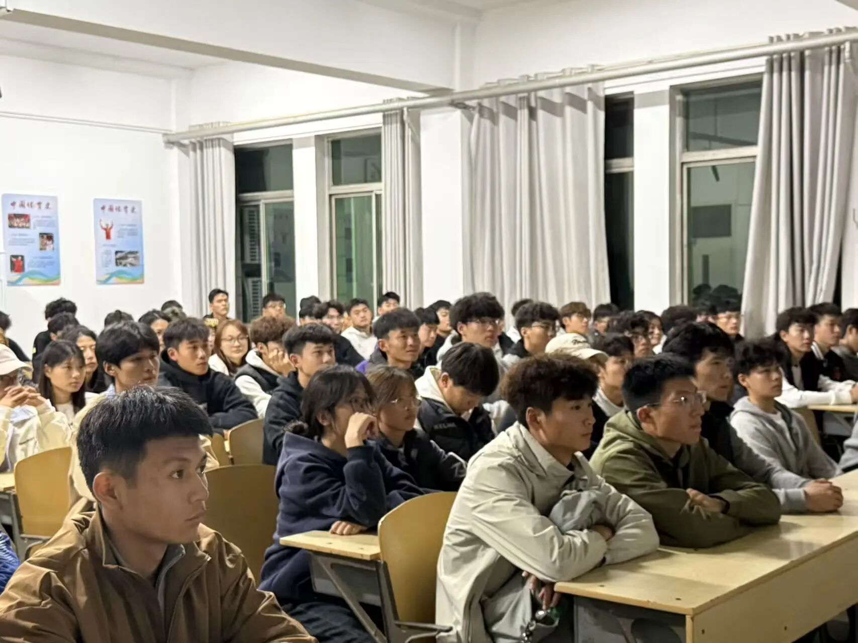 观影过程中,同学们始终专注投入。当看到主人公冒着生命危险留存历史证据时,不少人深受触动——这份动容,正源于影片对“照相馆”深层意义的诠释:它不仅是定格影像的空间,更是守护历史记忆的坚固堡垒。每一张照片背后,都镌刻着中华民族于危难时刻彰显的尊严与气节。主人公的壮举,更让同学们真切体会到:黑暗年代里,普通人守护真相的勇气有多可贵,中华儿女对民族记忆的坚守就有多坚定。影片这一深刻内涵,也引发了大家的深度思考。