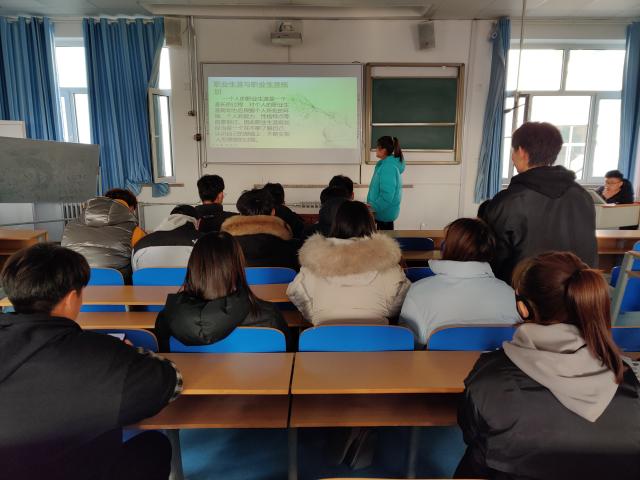 职业技能规划部负责人通过课件给大家详细的介绍相关职业的知识以及老员工职业生涯规划的重要性,并进行一系列小测试,让同学们加深对相关职业理解。介绍完之后,参加班会的同学进行互动讨论。班会最后负责人总结,对自己想从事的职业要进行深入综合的分析,了解该职业所需的专业训练、能力、年龄、性格特点等要求,职业的性质、工作环境、福利待遇以及发展空间和就业竞争机会。
