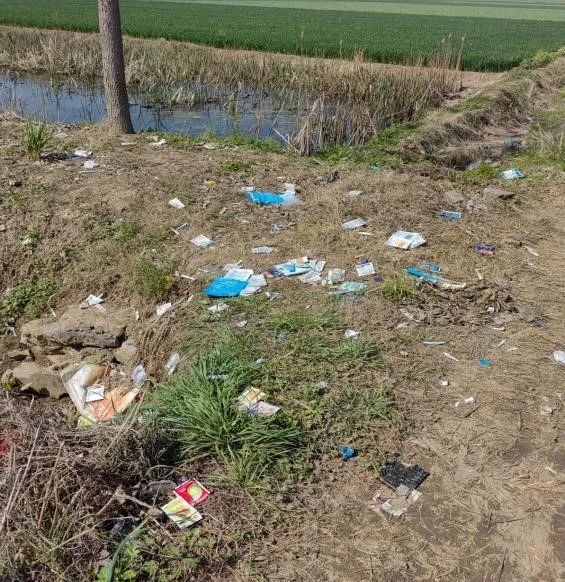 经过我们的实地走访和询问,我们了解到当地蔬菜种植大都使用蔬菜大棚的种植方式,在调查中我们还发现当地的河沟与以及蔬菜大棚周边均发现很多农药包装。由此可见蔬菜大棚在提高产量的同时也增加了农药的使用,甚至出现了农药大量使用后污染环境的现象,而且大量的农药包装还存在儿童误食等安全隐患。在走访与调查的同时,团队成员主动清理了周边的农药包装,同时,团队成员还向当地农民分发安全用药知识手册,提出农药包装集中收集处理的建议,提高了农户们的生产安全意识,切实保护了农户自身安全。当地村民认真倾听、积极参与,对团队成员的行为表示了极大的赞许与支持。