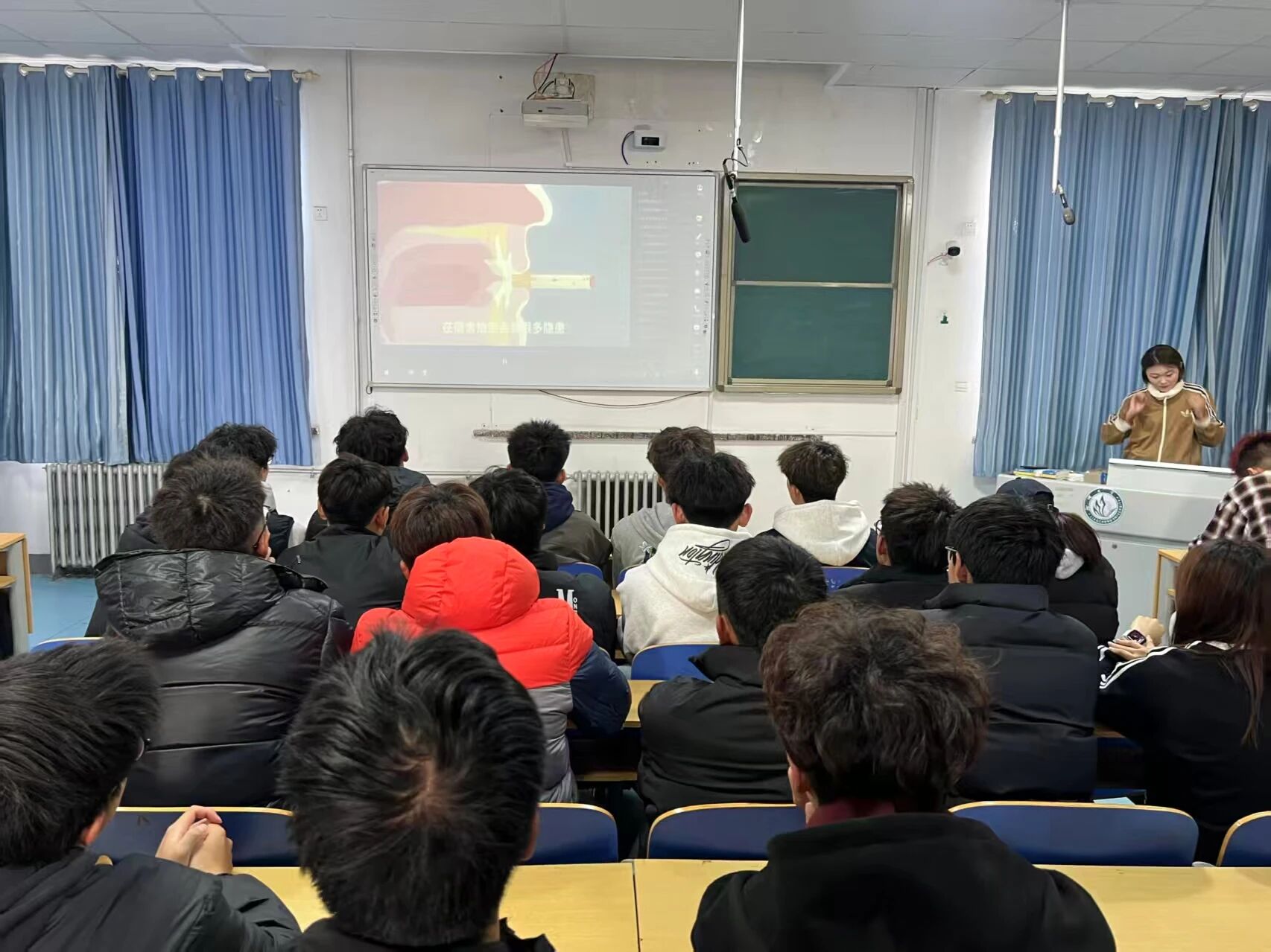 活动伊始,主持人王文梅开场致辞,强调了宿舍作为同学们日常居住的场所,创建无烟环境对个人健康与公共安全的重要意义。宣讲会通过真实案例视频展示、无烟知识问答与员工代表倡议发言等环节层层推进,全面加深了同学们对无烟宿舍建设的理解与认同,有效引导大家树立正确的健康观念,自觉抵制吸烟行为,共同守护洁净、绿色的宿舍空间。