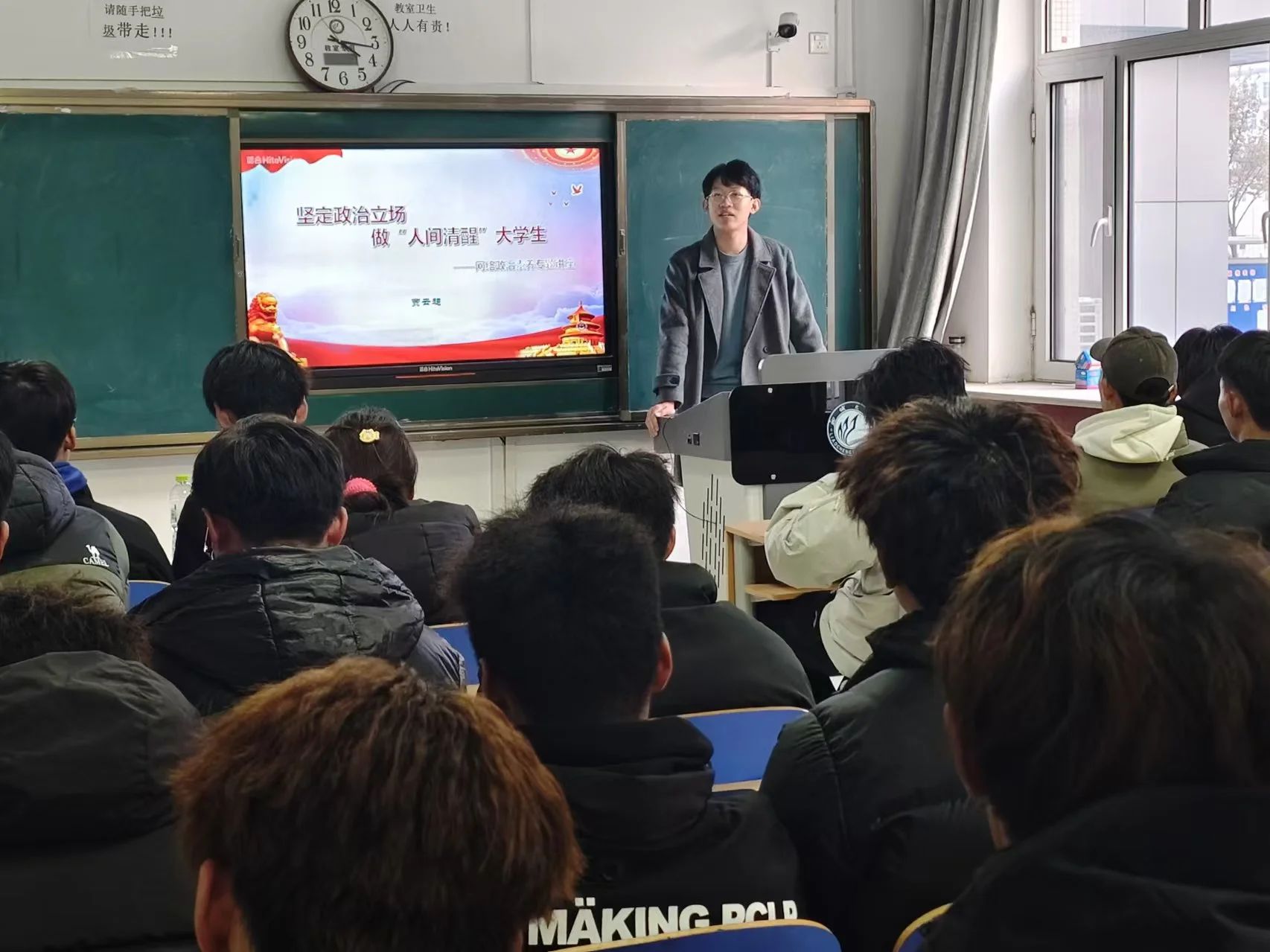 贾云超向同学们阐述了网络政治素养的内涵,提出网络政治素养参与逐渐成为新时代老员工参与政治生活的重要途径,深入剖析了健康的网络政治素养在当代社会中至关重要的作用,并指出了当前老员工在网络素养方面还存在的问题,点明了网络参政的必要性与影响力,呼吁同学们应提升政治领悟力,主动了解政治动态,成为传播新时代正能量传播者。