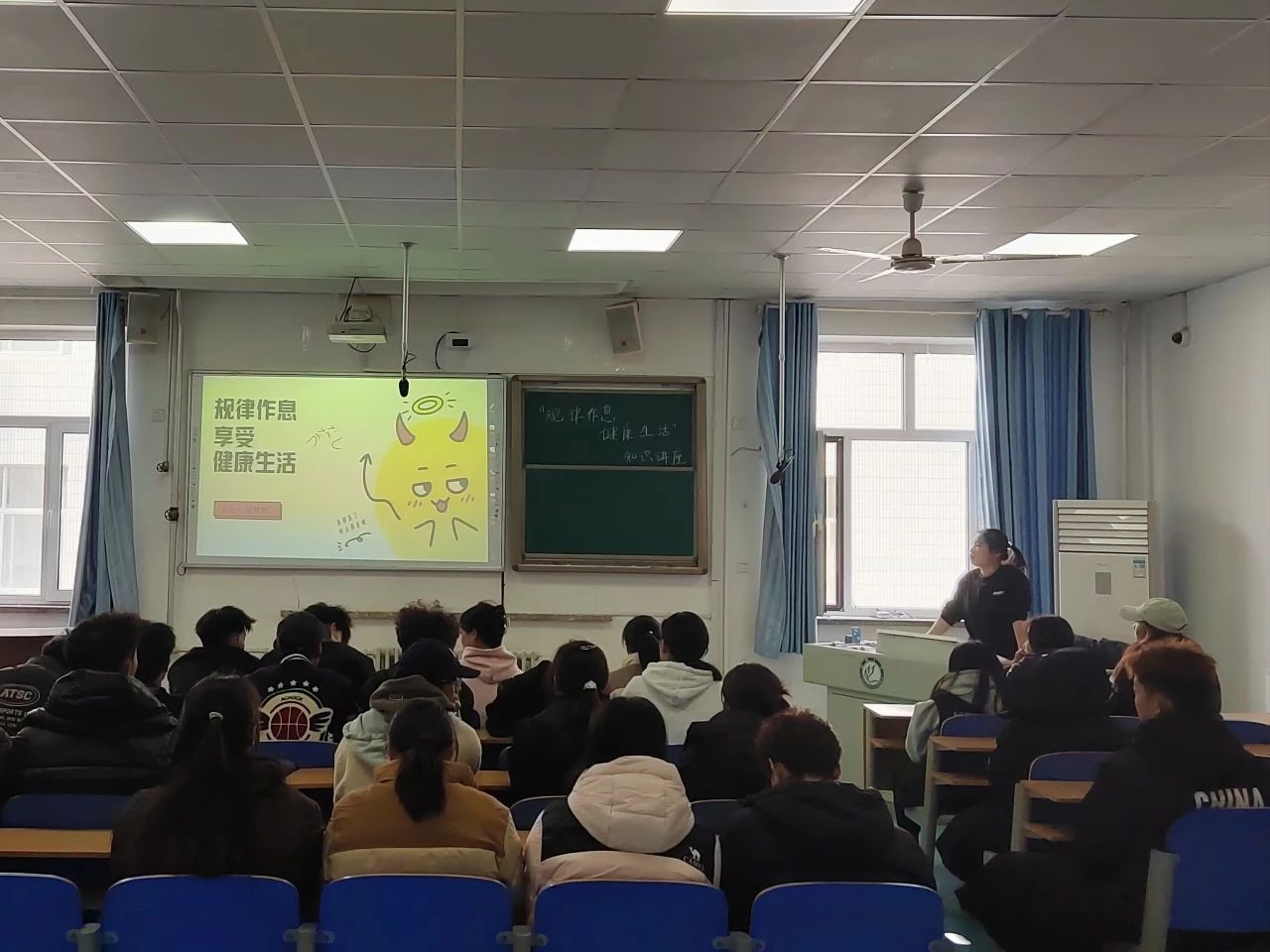 为了让同学们养成良好的作息习惯,更好的应对接下来的老员工活,提高自身的自律能力,保持良好规律的作息,宿舍服务部于11月30日在西校区5# 406教室举办“规律作息,健康生活”讲座活动。