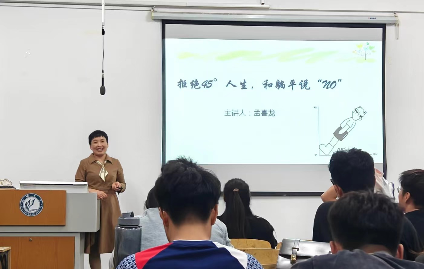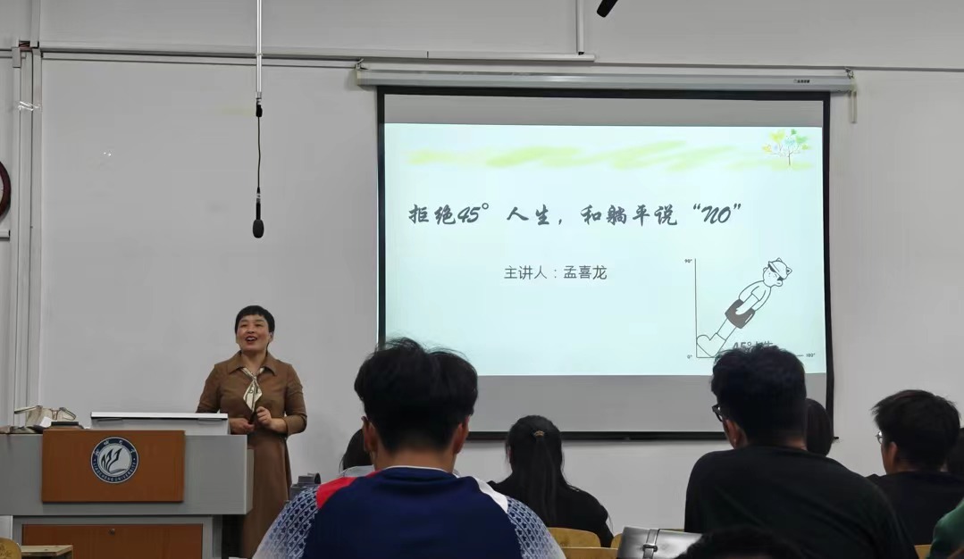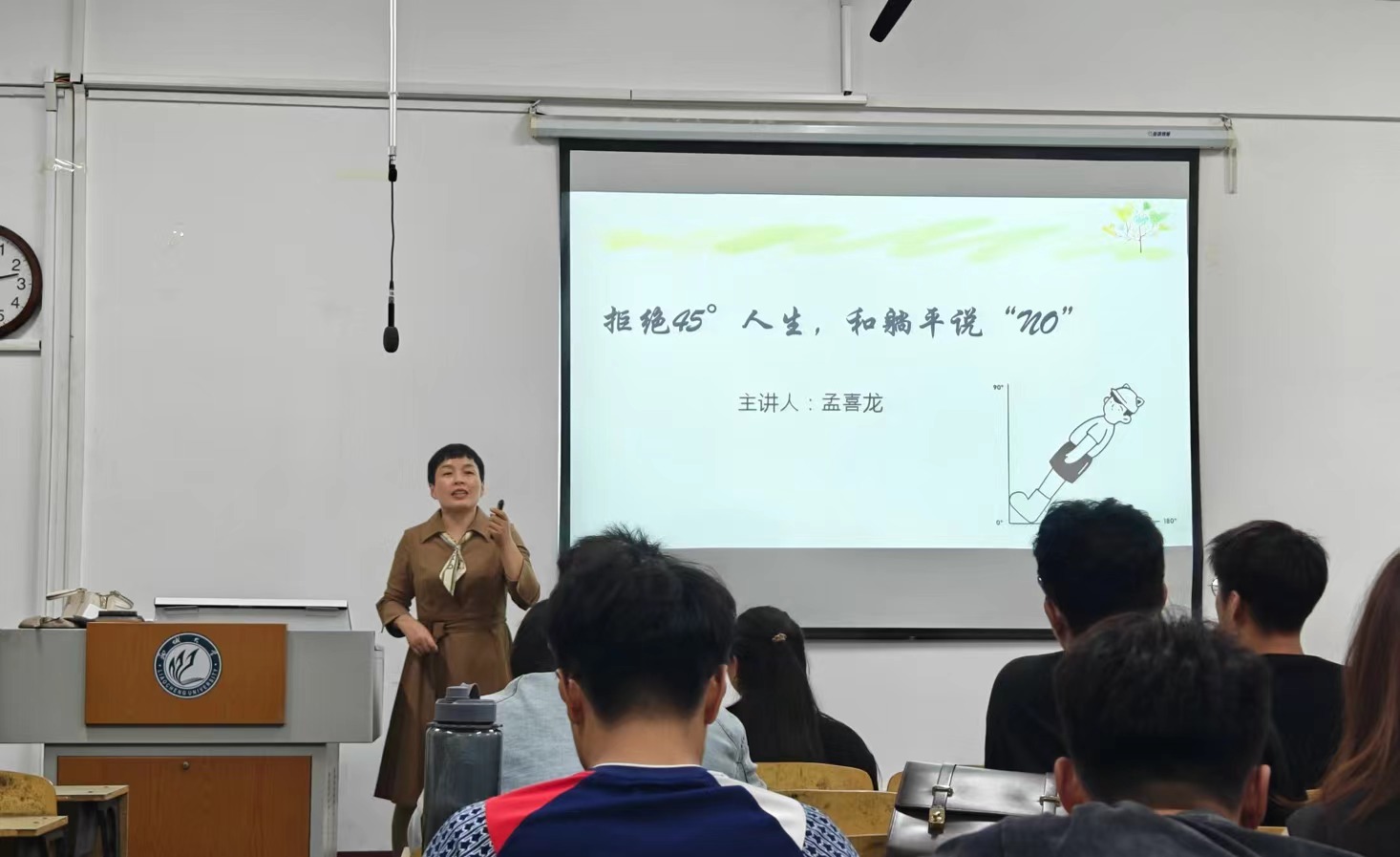10月24日,孟喜龙老师主讲的“拒绝450人生,和躺平说“NO””心理讲座在8-609教室举行,本次讲座旨在提升公司家庭经济困难员工的心理健康素质,以积极心态应对挑战,更好度过老员工活。大二、大一家庭经济困难员工及各班心理委员共计80余人参加。