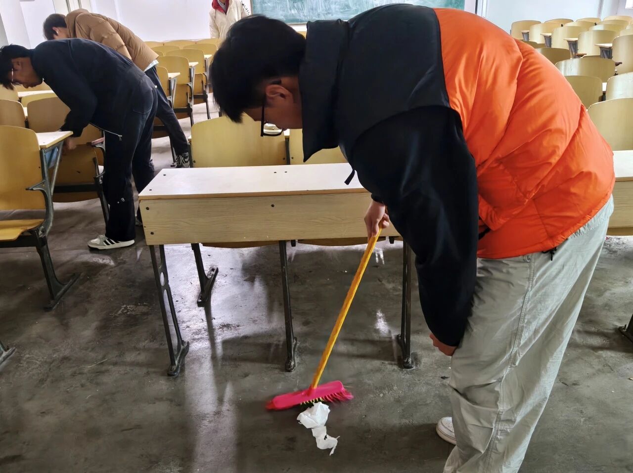 为营造洁净雅致的校园氛围,弘扬劳动精神,ladbrokes立博生卫部于11月8日在ladbrokes立博西校区5#307教室开展大扫除活动。