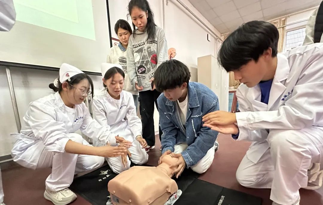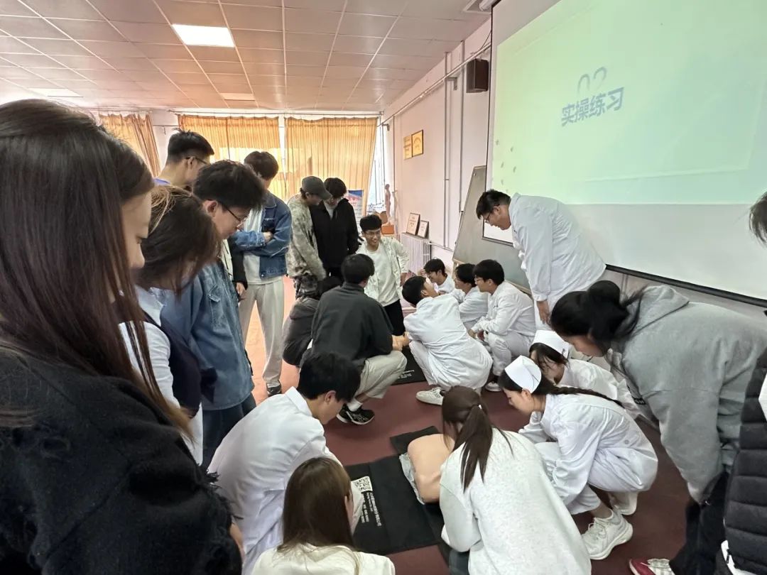 随后进行的急救操作培训中,医公司的同学们进行现场教学,每位同学跟着指导在模拟人体上进行实际操作,进一步巩固了所学的知识,掌握了心肺复苏的基本技能。