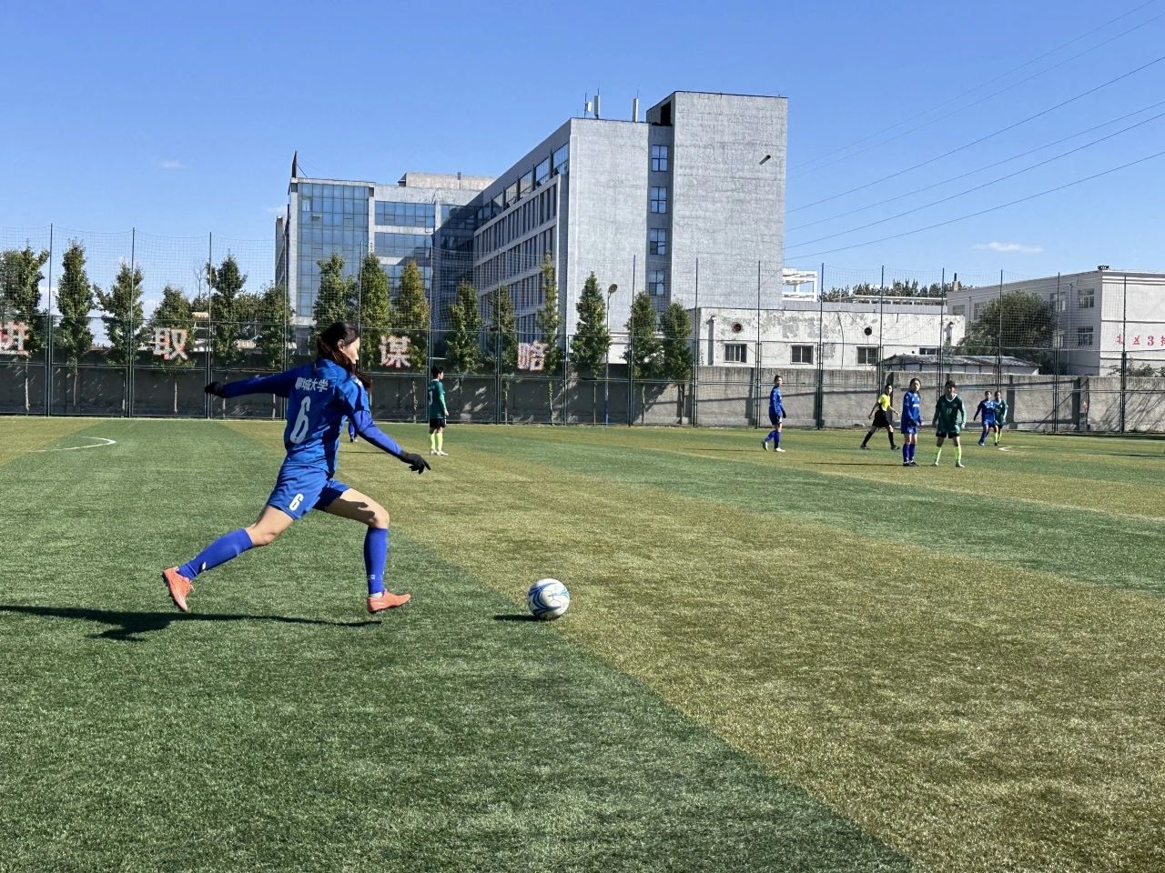 为备战此次比赛,我队女足放弃假期与周末休息时间,坚持刻苦训练,展现了聊大学子良好的精神面貌和竞技水平。